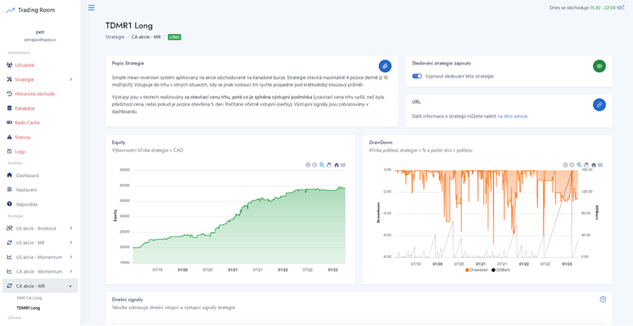 V Trading Room dashboardu jsou sdílené následující strategie:
