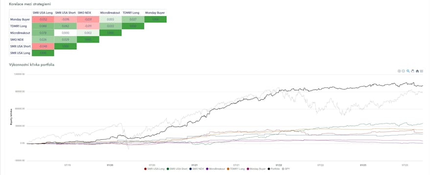 Sílu celého svého přístupu ale nevnímám v jednotlivých strategiích. Vnímám ji v celku, kdy strategie skládám do portfolií, přidávám k nim zajišťující strategie (hedging), nastavuji váhy, řeším a analyzuji různé situace tak, jak se v trzích a praxi živého obchodování vyskytují.